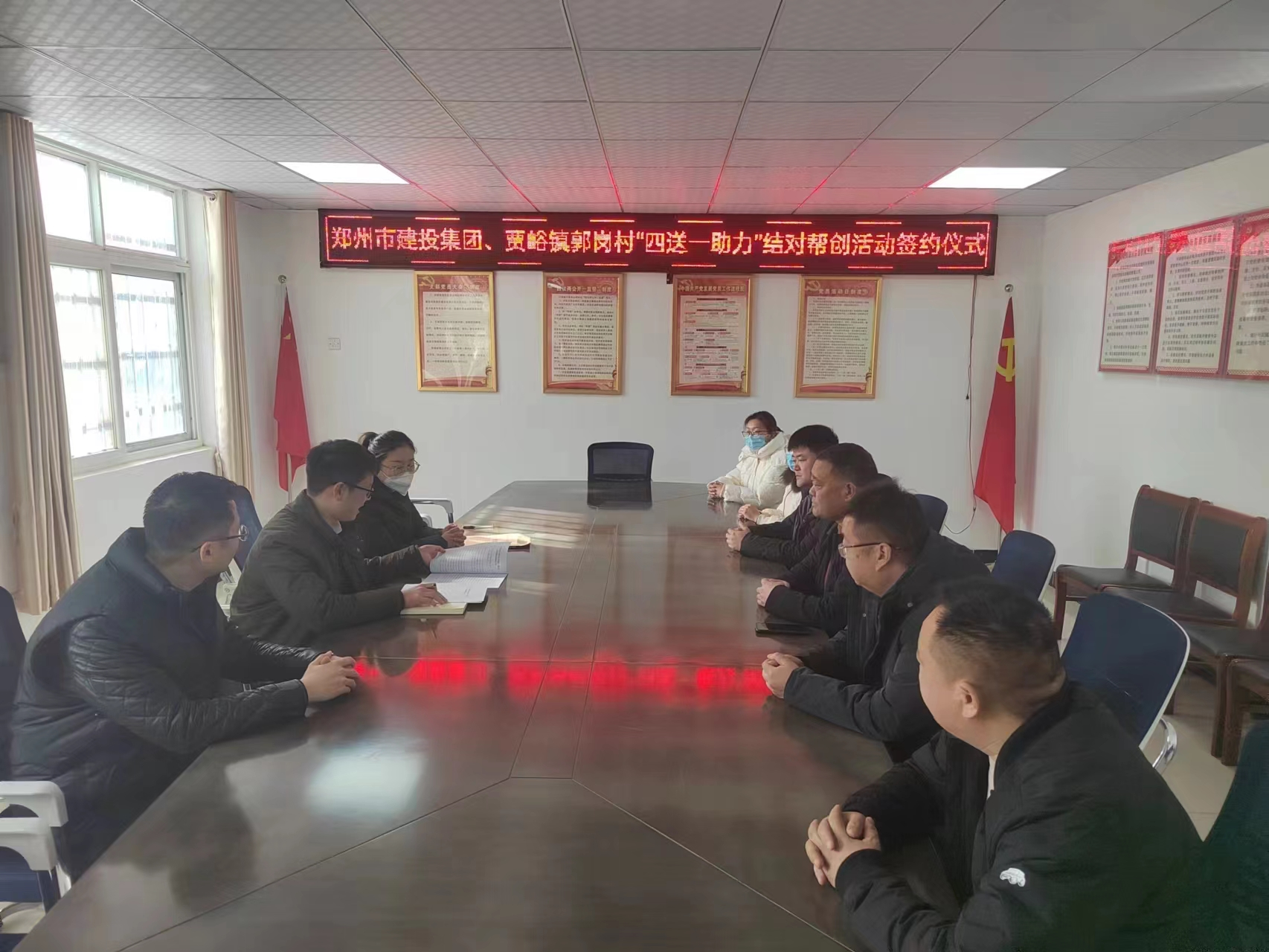 為適應城鄉(xiāng)一體化發(fā)展新趨勢,不斷縮小城鄉(xiāng)居民在精神文化生活方面的差距,進一步深化農(nóng)村精神文明建設,促進城鄉(xiāng)精神文明融合發(fā)展,更好助力全面推進鄉(xiāng)村振興、加快農(nóng)業(yè)農(nóng)村現(xiàn)代化,按照市文明辦《鄭州市各級文明單位“四送一助力”結對幫創(chuàng)活動實施方案》要求,1月17日下午,受集團公司黨委書記、董事長、總經(jīng)理秦廣遠委托,集團公司紀委副書記趙少先帶領公司幫創(chuàng)工作組一行四人,前往結對滎陽市賈峪鎮(zhèn)郭崗村,組織開展“四送一助力”活動,助力幫創(chuàng)村“五星支部”創(chuàng)建和鄉(xiāng)村振興工作走深走實。
