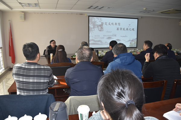 吳教授以《堅(jiān)定文化自信,筑牢民族之魂》為題,圍繞文化自信的含義、牢牢掌握意識(shí)形態(tài)工作領(lǐng)導(dǎo)權(quán)、培育和踐行社會(huì)主義核心價(jià)值觀、繁榮發(fā)展社會(huì)主義文藝等四個(gè)方面進(jìn)行了專題輔導(dǎo)。他認(rèn)為文化自信是一個(gè)民族、一個(gè)國(guó)家以及一個(gè)政黨對(duì)自身文化價(jià)值的充分肯定和積極踐行,并對(duì)其文化的生命力持有的堅(jiān)定信心。他歸納出讓中國(guó)人“自信”的“文化”,至少包括三個(gè)層面:中華優(yōu)秀傳統(tǒng)文化、革命文化、社會(huì)主義先進(jìn)文化。當(dāng)前我們面臨的挑戰(zhàn)和困難前所未有,境內(nèi)外敵對(duì)勢(shì)力插手意識(shí)形態(tài)斗爭(zhēng)的情況越來(lái)越復(fù)雜,形勢(shì)越來(lái)越嚴(yán)峻,多種勢(shì)力聯(lián)手,通過(guò)網(wǎng)絡(luò)、新媒體等各種手段,妄圖摧毀中國(guó)人的自信和共產(chǎn)黨的執(zhí)政根基。我們要按照習(xí)總書記的要求,堅(jiān)持黨管意識(shí)形態(tài)原則不動(dòng)搖,進(jìn)一步堅(jiān)定共產(chǎn)主義理想信念,從我做起,從現(xiàn)在做起,在意識(shí)形態(tài)斗爭(zhēng)中做到對(duì)黨忠誠(chéng)、個(gè)人干凈、敢于擔(dān)當(dāng),對(duì)一些意識(shí)形態(tài)的挑戰(zhàn)要敢于亮劍。