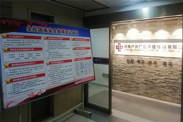 三、豐富活動形式,營造濃厚氛圍。集團公司有效運用集團公司官方網(wǎng)站、微博、微信、展板等集中宣傳國家安全教育活動相關內容,在辦公場所明顯位置設立宣傳展板三塊,廣泛宣傳國家安全相關法律法規(guī)和維護國家安全的基本知識,營造了良好的活動氛圍,不斷提高活動的影響力;各項目部、各控股公司分別結合實際,通過宣傳展板、宣傳條幅、電子海報,LED大屏循環(huán)、施工圍擋等多途徑宣傳國家安全教育活動,全面覆蓋集團全體職工、承建項目全體參建人員。本次宣傳有效覆蓋人數(shù)達到2000余人。